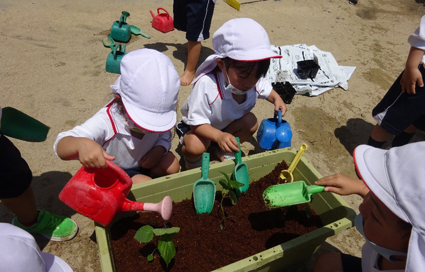 育ち盛りの子どもたちにとって、自然は友達であり、先生。植物を見たり、小さな生き物にふれたりすることで、命を感じ、命の尊さを学び、豊かな心を育んでいきます。そして、自然は子どもたちにとって癒しの効果があります。また自然とふれあうことで、健康な体や豊かな感性、道徳観を育てるほか、集中力や正義感、自己抑制力を身につけています。