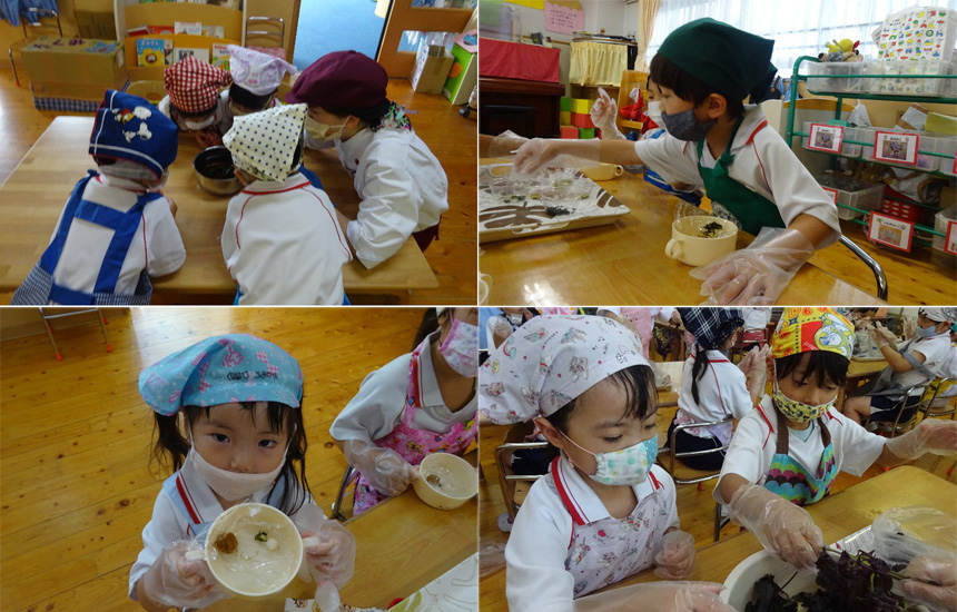 “生きる=食べる”ことって楽しい!と子どもたちが感じられるように、幼稚園教諭・保育士・栄養士・調理師・食育指導士の多資格を持つ「フードコーチングスーパーバイザー(食育担当専任教諭)」と栄養士の先生が様々な活動を行っています。