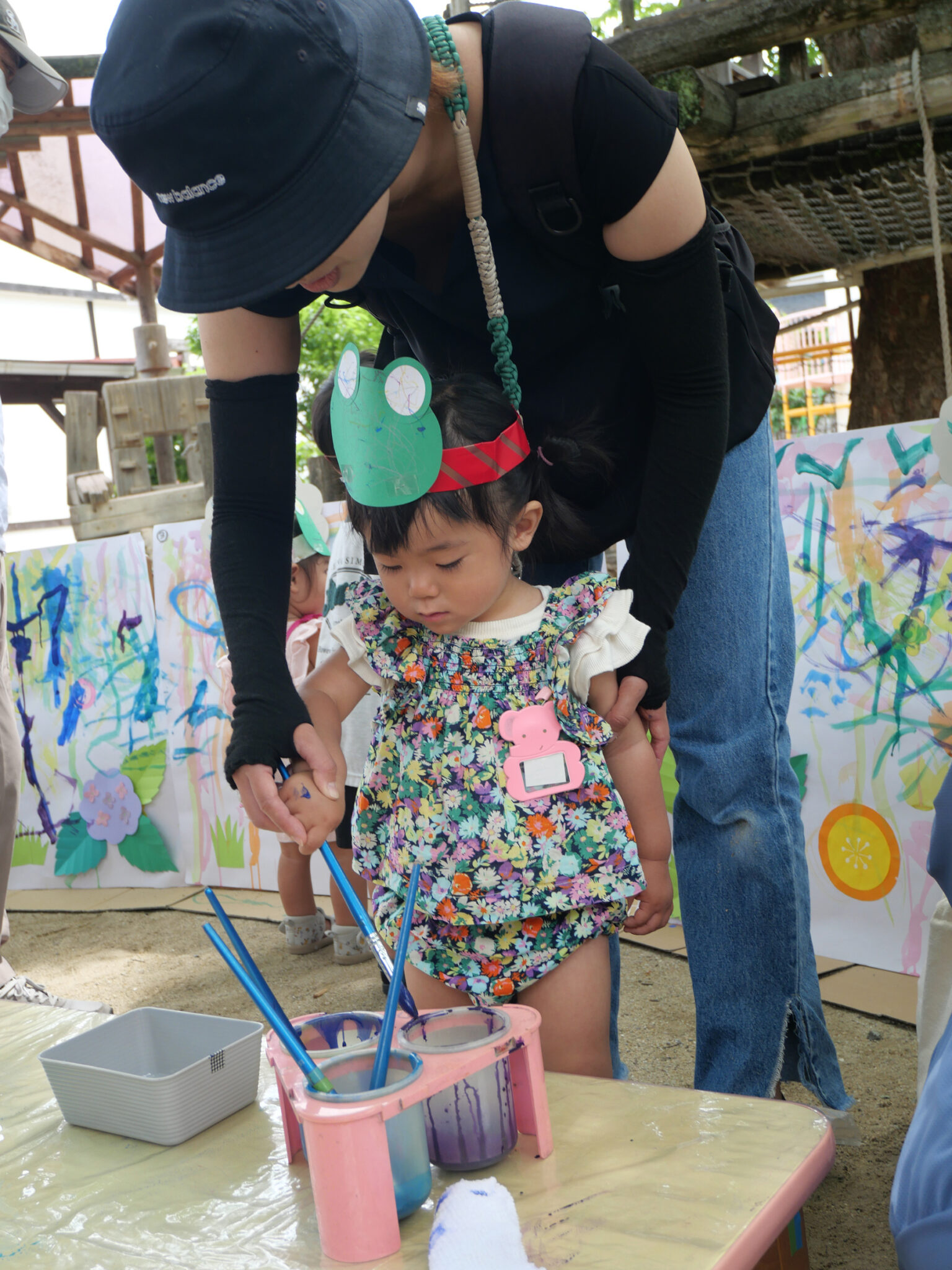 造形あそび・昔あそび・わらべうたなど、親子でのふれあい遊びや、読み聞かせ、外遊びなどを織り交ぜ、のびのびと楽しめます。週2回クラス。1学期は親子で、2学期は子どものみの活動になって時間も延長されます。