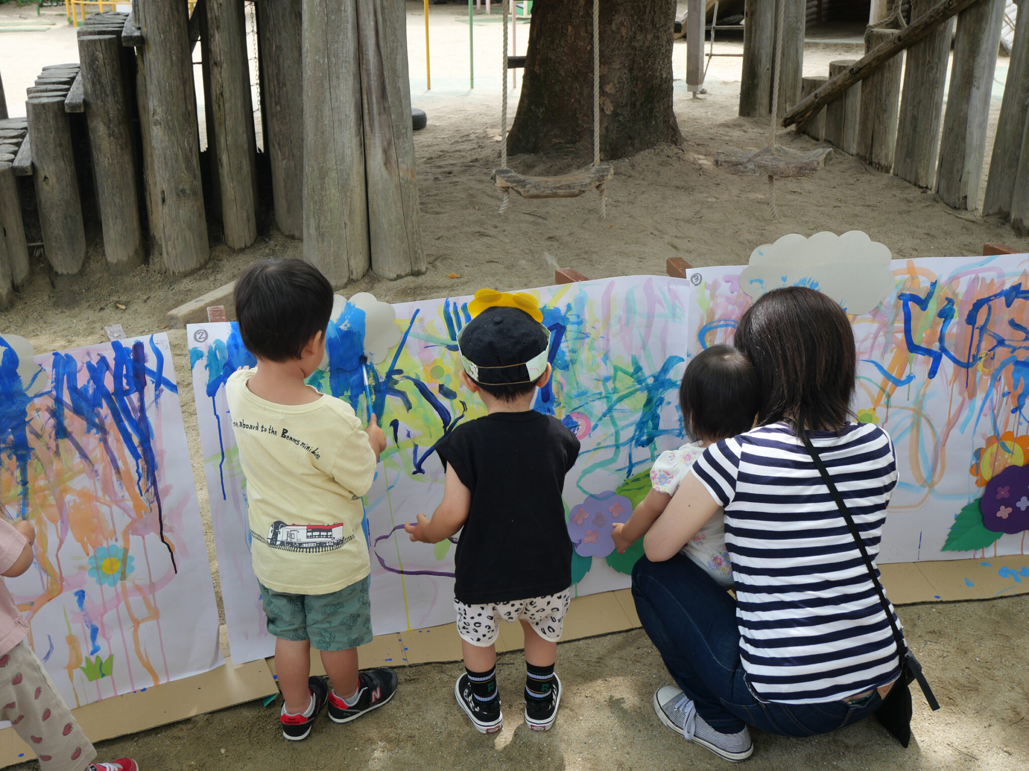 未就園児のために園庭開放をしています。遊具で遊んだり、作ったり、描いたり、親子で楽しい遊びを見つけて頂いています。