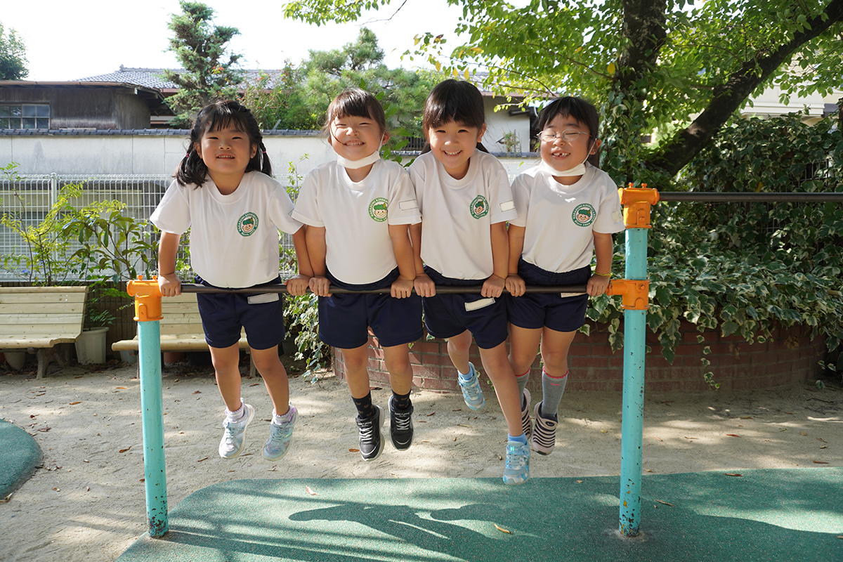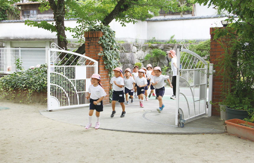 仲間たちと五感をフル回転して、大いに遊び込むながずみ幼稚園の子どもたち。豊かな遊びが心の土台を育み、主体的に物事に取り組める力を身につけています。そして、のびのびとした友達との関わりの中で、人としての優しさを育んでいっています。