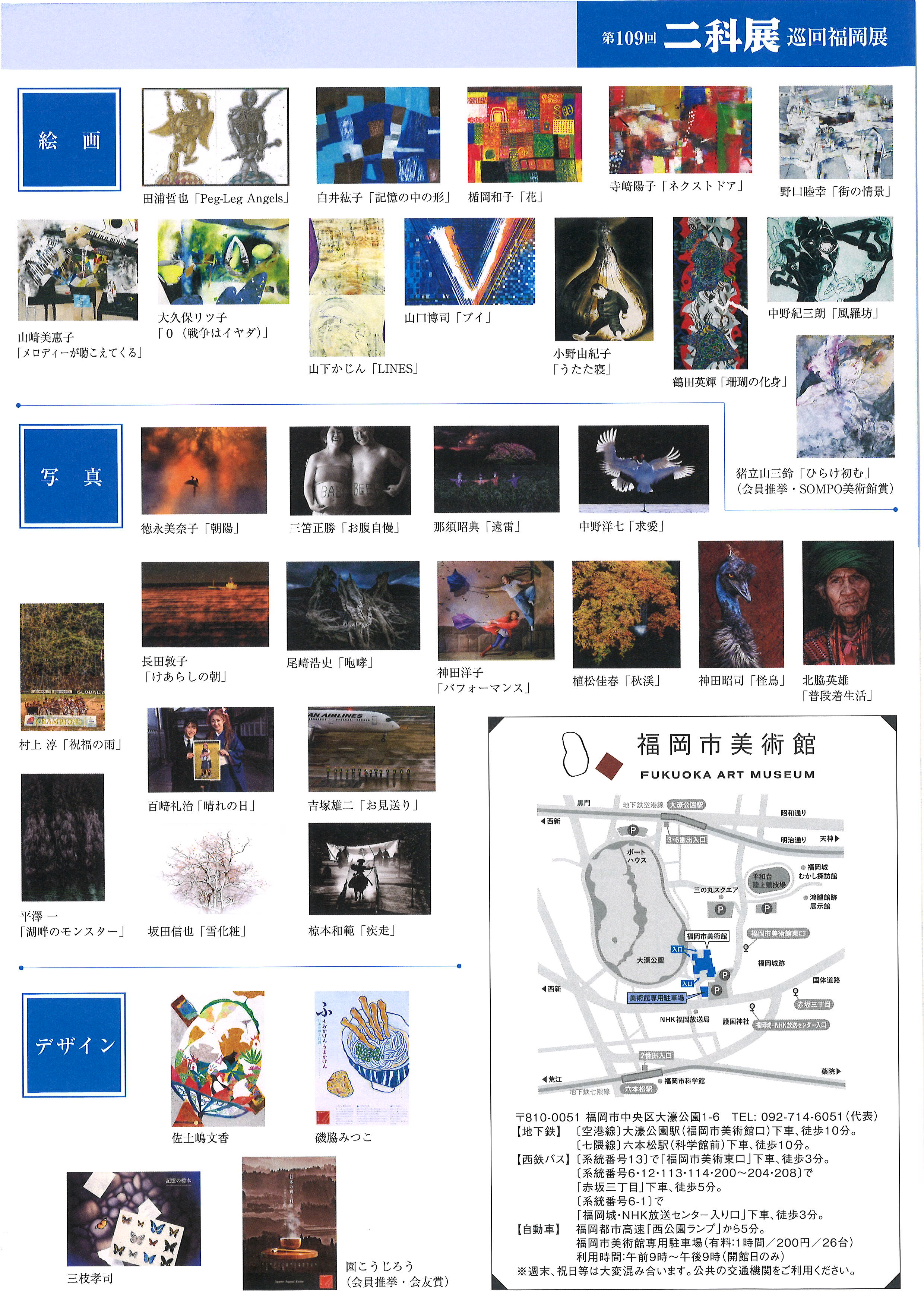 おでかけ イベント 中高生 口コミ情報ボード 小学生 【3/18(火)~3/23(日)】第108回二科展 巡回福岡展 公開日: 2026年01月08日 絵画、彫刻、デザイン、写真の4部門合計約300点 ◎期間 2025年3月18日(火)~3月23日(日) ◎会場 福岡市美術館 ギャラリーABCDEF ◎観覧料 大人800円、学生500円、中学生以下無料 ※前売料金 大人600円、学生300円 この記事もおすすめ 口コミ情報ボード 【2/1(日)】個性発見フェス~遊びながら見つけてみよう!!~ 口コミ情報ボード 【2025年12月5日(金)~2026年1月31日(土)】闇バイトや特殊詐欺に関する悩みを持つ若年層を対象とした、無料のLINE相談事業を実施中 口コミ情報ボード 【3/18(火)~3/23(日)】第108回二科展 巡回福岡展 口コミ情報ボード 【12/25(木)】音楽劇「平和の鐘」 〜ともに未来へ〜 口コミ情報ボード 映画18歳以下は無料!12/25(木)~27(土)『ふくおか国際映画祭 With Everyone 2025』開催!