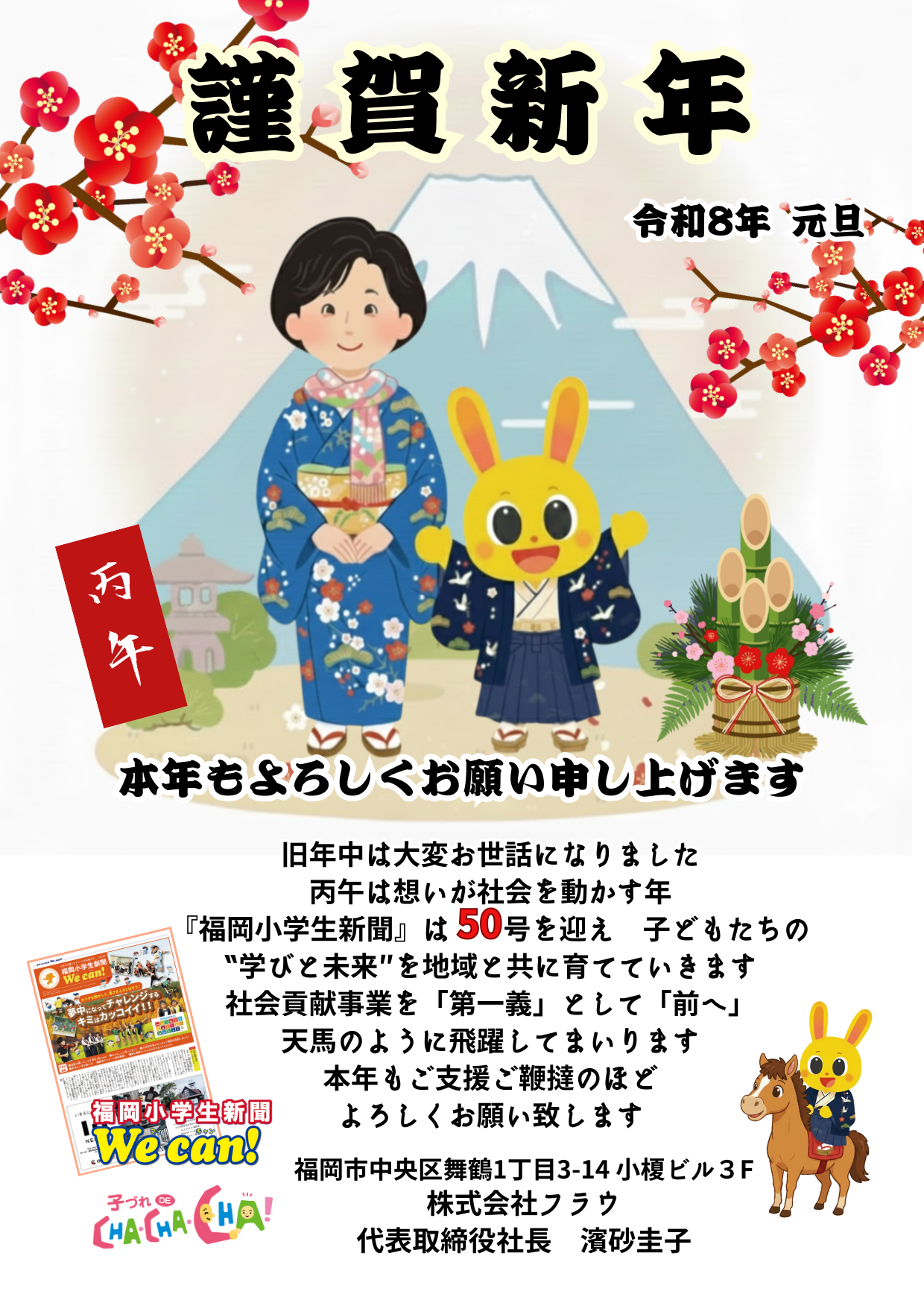 CHA3編集部からのお知らせ スタッフブログ 新年あけましておめでとうございます。 公開日: 2026年01月01日 皆さま、新年明けましておめでとうございます。 子育て支援を通して社会を変え続け 今年で33年目となります! 本年も尚一層のお引き立てと ご愛顧のほどお願い申し上げます。 令和8年 株式会社フラウ 主婦生活総合研究所 この記事もおすすめ CHA3編集部からのお知らせ 新年あけましておめでとうございます。 CHA3編集部からのお知らせ 年末年始休業のお知らせ CHA3編集部からのお知らせ 10/19(日)開催!赤ちゃんハイハイレース・カタカタレース&ハロウィン撮影会!参加者募集★ CHA3編集部からのお知らせ PaPa Style vol.92 CHA3編集部からのお知らせ 3/22(土)We can! LAND 春まつり♪in アイランドシティ中央公園 参加者募集
