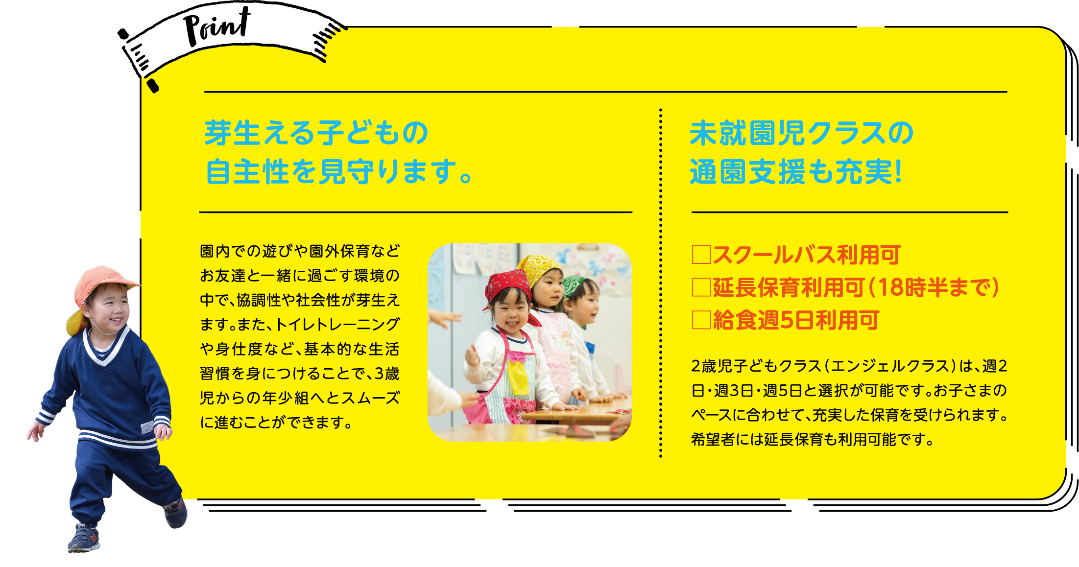 週2日・週3日・週5日が選べる2歳児子どもクラス(エンジェルクラス)