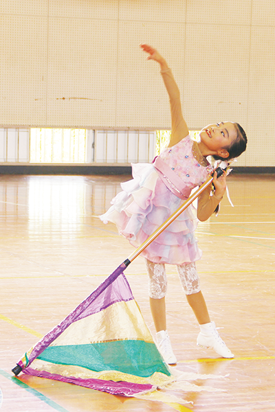 姉・由菜さんの影響で7歳の頃からカラーガードを始めた由梨さん。初挑戦の大会で金賞を受賞できて「嬉しかったし、トスを失敗しなかったからよかった!」と話します。カラーガードの楽しいところは「演技の中でライフルをキックすること」。今は練習を通して、得意な技を見つけようと日々頑張っています!