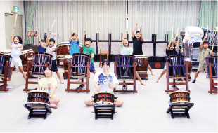 演奏には締太鼓、長胴太鼓、桶太鼓、大太鼓の4種類の太鼓を使用。一緒に練習する中高生チーム「欅座」と地域のお祭りや施設、イベントなどで演奏し、久山を盛り上げています。イベントの前には練習がほぼ毎日になることもありますが、それでもみんな楽しそうにしていて、休む人は少ないといいます。その練習の成果として出される息の合った太鼓の演奏、大きな掛け声、振りは見る人を圧倒します。