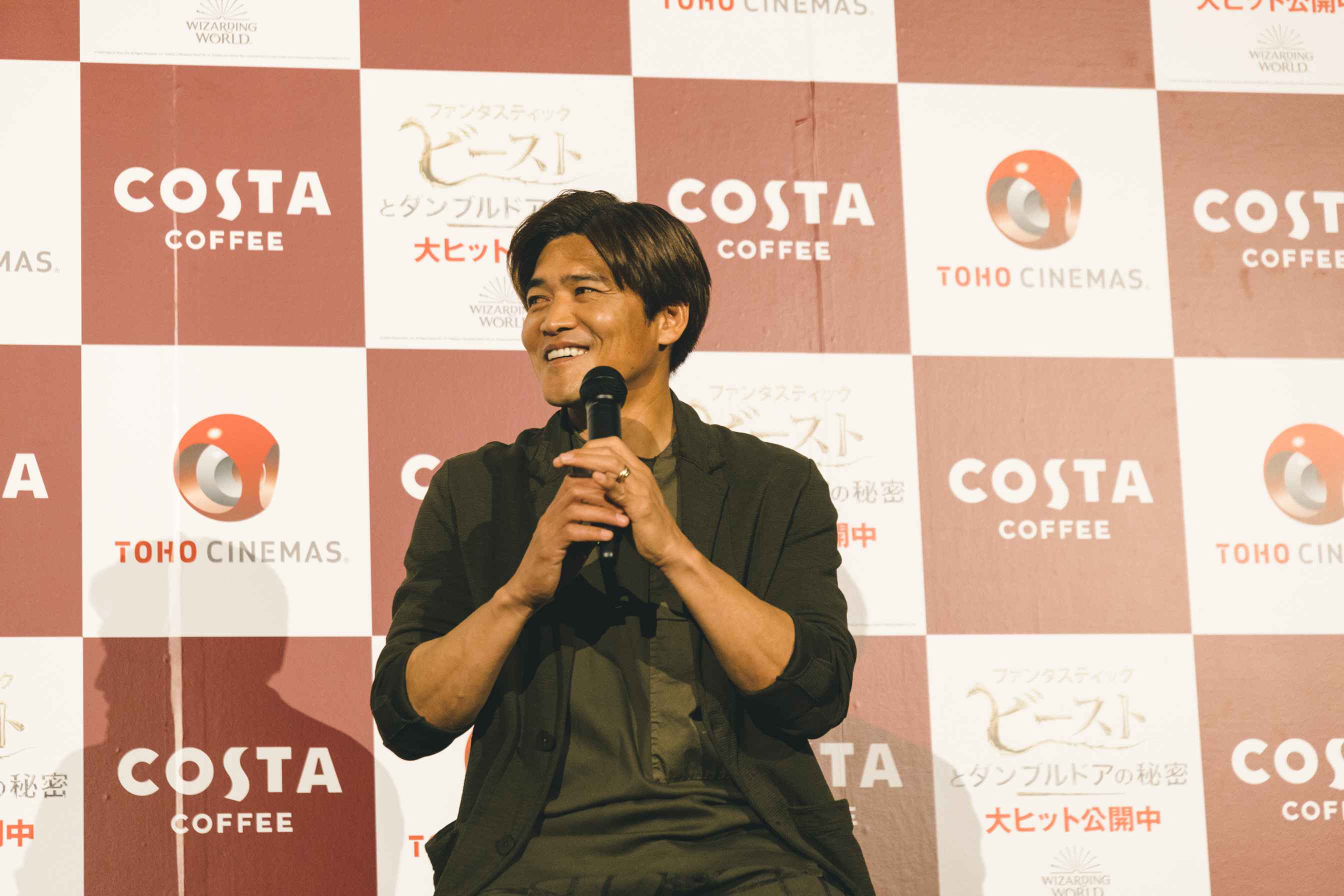 また、本日は大ヒット公開中の映画『ファンタスティック・ビーストとダンブルドアの秘密』の上映会も行われましたが、一足先に本編を鑑賞した感想を求められると、上映前のためネタバレを気にするMCに対して「面白いので全部言いたい(笑)」と大久保さん。「一人一人の個性も凄くあって、全員が主役かと思うくらい、キャラクターに深みがある」「特に動物達(ファンタスティック・ビースト達)が本当に可愛い。しかも、ピンポイントで凄くいい仕事をするんですよ!それがたまらなかった」と振り返った。また、「家に帰ったら、いつのまにか魔法の杖が4本あったんですよ!子供が全員はまって、それぞれ購入して魔法ごっこしてます(笑)」と、イメージ通りの仲の良い家族風景が垣間見えた。さらに本作の内容がチームで戦う話だということに触れ、現役時代の話を聞かれた大久保さんは「サッカーは本当にチーム戦で、一人のミスが大きく影響するので、今回の話も本当にサッカーに似ていて、全員が自分のポジションの仕事をしっかり全うしていたなと思った」と元サッカー選手らしいお話が伺えました!!