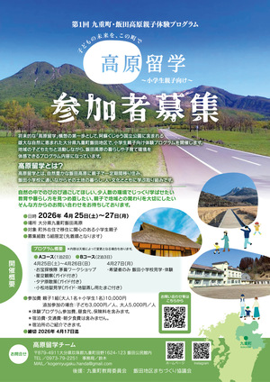 福岡から車で約2〜3時間、大分県九重町にて、 小学生親子向けの体験プログラムを開催します。 自然の中で遊び、地域…