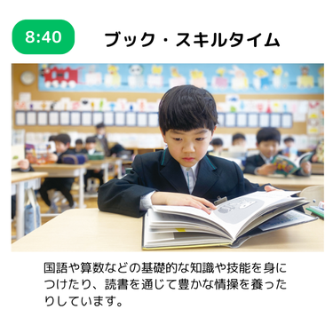 読む、書く、話す、計算などのスキルをしっかり身につけ、学びの基礎を作ります。